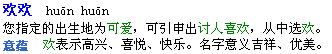 2. 點擊“提交”按鈕,系統(tǒng)即可為您起出符合要求的小名。以下是名字“歡歡”的解釋信息。